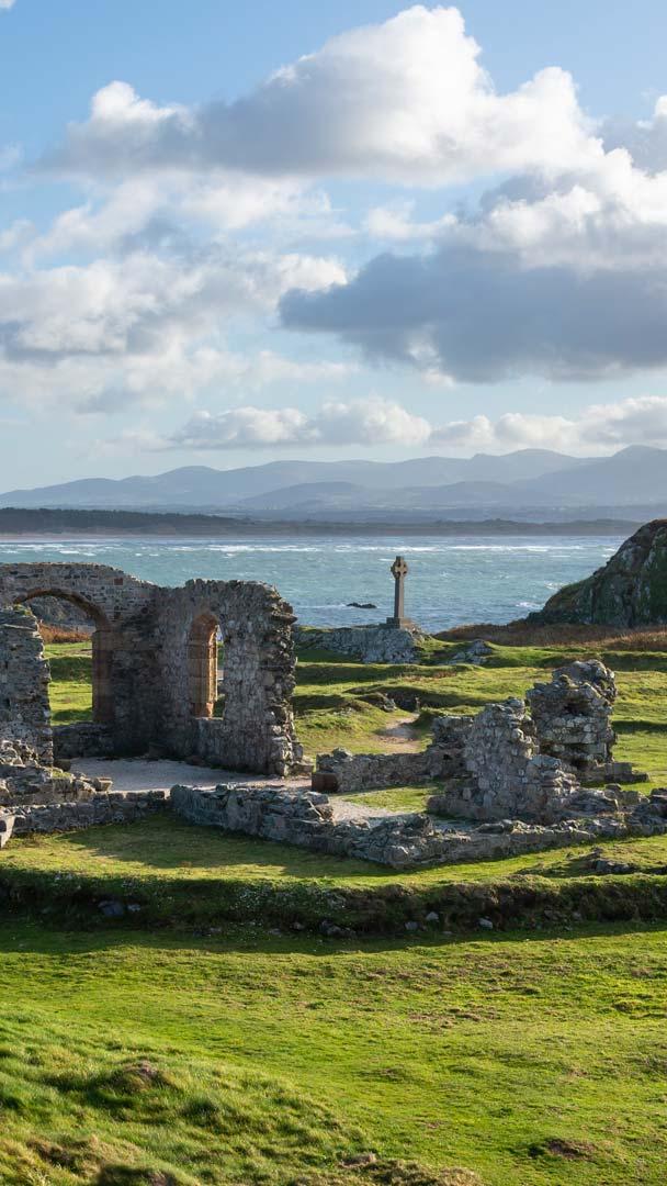 Ynys Llanddwyn—or Llanddywn island—is a tiny, idyllic piece of land off the western coast of Anglesey in Wales, United Kingdom. It has a profound connection to St. Dwynwen, the patron saint of lovers, which can be seen in the name of the island: Llanddwyn means "Church of Dwynwen." Legend has it that Dwynwen, a princess in the 5th century, sought solace on this island after a tragic love story. The young woman fell in love with a commoner, but because her royal father forbade the union—and after briefly turning her beloved into a block of ice—she moved to the island and set up a convent. She dedicated her life to spirituality, living as a hermit and helping others with matters of the heart. The remains of Dwynwen"s church, a well and the ruins of a convent are testaments to her legacy on Ynys Llanddwyn.