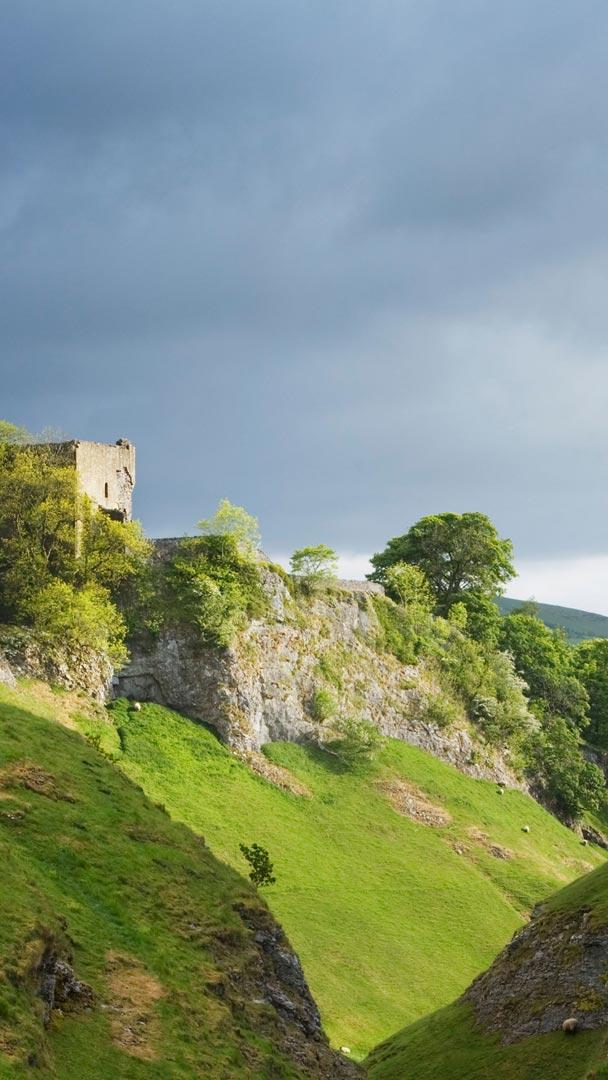 Among the green hills of Derbyshire, UK, stands Peveril Castle on a limestone outcrop. Once a medieval fortress, the ruins now overlook the village of Castleton in High Peak in north-central England. The construction of the fortification began shortly after the Norman conquest in the 11th century, although it wasn"t completed until the 14th century. From the castle, we can enjoy views of Cave Dale—a ravine carved by glacial meltwater over many years. There are several smaller caves or disused lead mines within the dale"s limestone walls. From hidden caverns to towering battlements, this corner of the Peak District is bursting with history and waiting to be explored!