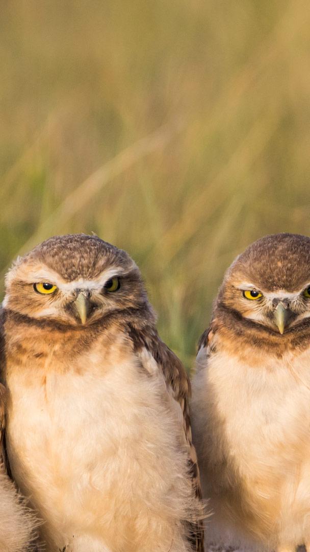 In today"s image, we see four burrowing owls in Wyoming, USA, standing near their burrow, looking like a band of mischievous siblings. Known for their distinctive white eyebrows and yellow eyes, these owls are active during the day, hunting insects and small mammals. Burrowing owls, also known as shocos, are between 18 and 28 centimetres in height and have a wingspan of 50-60 centimetres. Their name comes from their ability to inhabit burrows dug by mammals like prairie dogs, skunks or armadillos, where they nest and roost. They often look out for each other, warning one another of predators. They lay three to five eggs per clutch, incubating them for about a month. The lifespan of these cute creatures is about six to eight years.