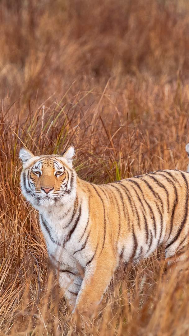 We"re off to a roaring start! Today"s image features a pair of tigers in Jim Corbett National Park in the Indian state of Uttarakhand. It was established in 1936 as Hailey National Park and covers approximately 320 square kilometres. It was later renamed Corbett National Park in honour of Jim Corbett, a conservationist who played a crucial role in its creation. The park was the first to be included in Project Tiger, India"s initiative to protect endangered tigers. This park has 256 Bengal tigers, master predators that play an essential role in the park"s ecosystem. Did you know that seventy percent of the global population of tigers—over 3,600—lives in India? These majestic predators are at the top of the food chain, often hunting large animals like water buffalo and even small elephants. Here visitors can book a jungle safari, accompanied by forest rangers.