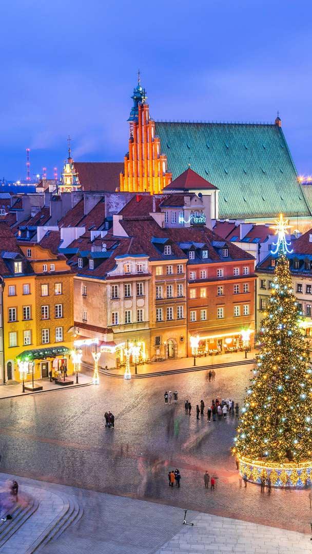 Parada para descanso polonês do Papai Noel Árvore de Natal na Praça do Castelo, Cidade Velha, Varsóvia, Polônia (© Panther Media GmbH/Alamy Stock Photo)