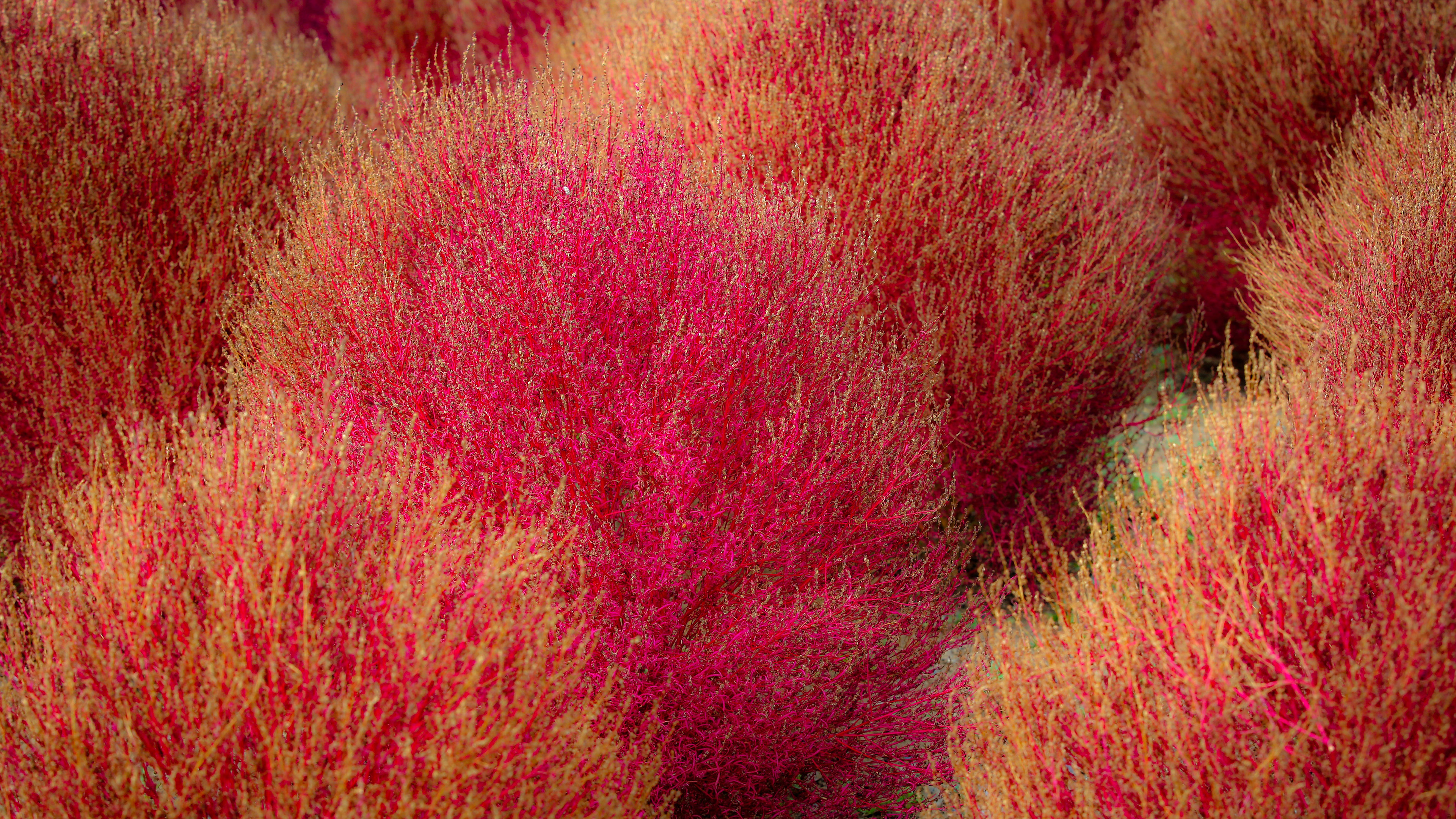 Uma bola de pelúcia do outono japonês Kochia, Hitachi, Prefeitura de Ibaraki, Japão (© DigiPub/Getty Images)