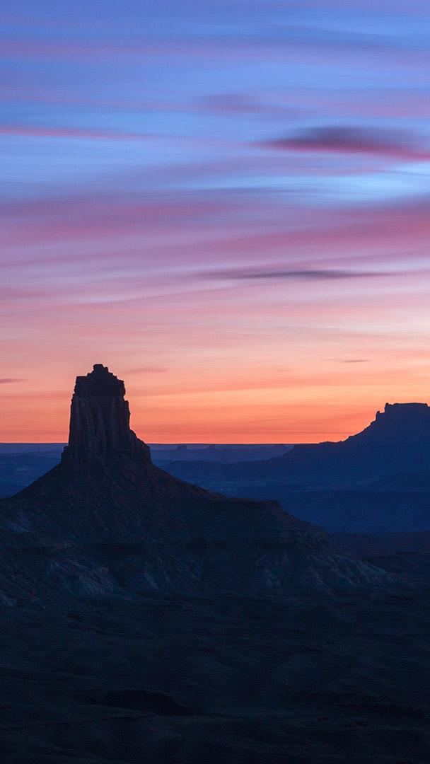 O perfil do deserto Pôr do sol no Parque Nacional de Canyonlands, Moab, Utah, Estados Unidos (© Jason Hatfield/Tandem Stills + Motion)