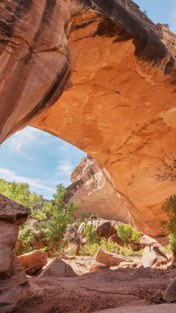Within the remote canyons of southeastern Utah in the United States, Natural Bridges National Monument highlights the power of erosion and the passage of time. Shaped by the relentless forces of wind and water, this monument features three magnificent natural bridges—Sipapu, Kachina and Owachomo. These bridges were named to honour the Ancestral Puebloans who once lived here. Sipapu is the largest bridge, with a massive opening that could almost fit the dome of the United States Capitol. Kachina, pictured here, is equidistant from Sipapu and Owachomo. It was named after the petroglyphs and pictographs found at its base. Owachomo is believed to be the oldest of the three. Its thin, arching structure suggests it may eventually collapse. Today, this monument remains a place of awe and solitude, where visitors can hike beneath the soaring bridges, gaze at some of the darkest night skies in the country and step back into a landscape sculpted over millions of years.