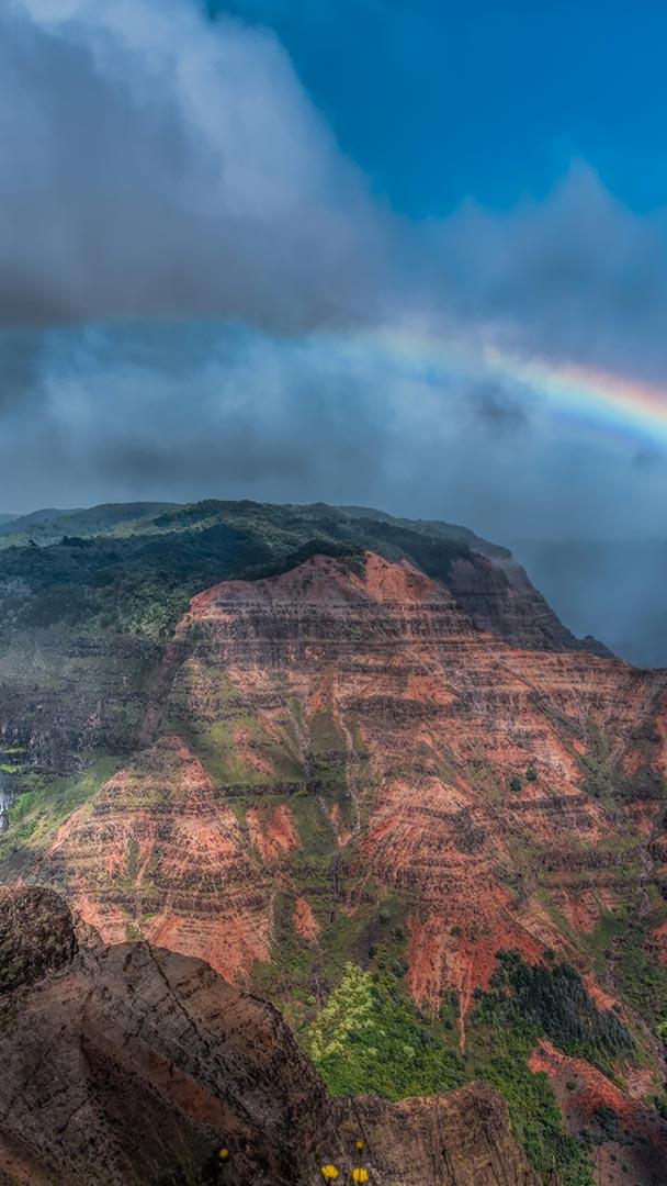 A rainbow that’s worth the rainfall Rainbow over Waimea Canyon and Waipoo Falls, Kauai, Hawaii (© Beverley Van Praagh/Getty Images)