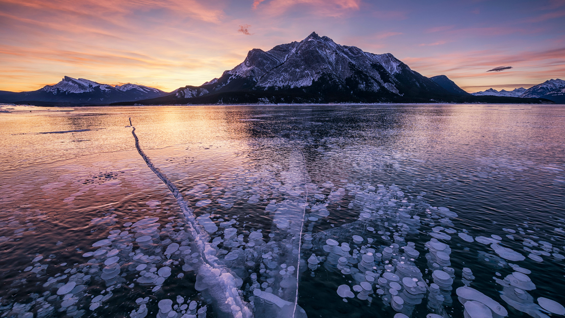 Scenic Mount Michener Mount Michener and a frozen Abraham Lake in Alberta, Canada (© Tom Mackie/plainpicture)