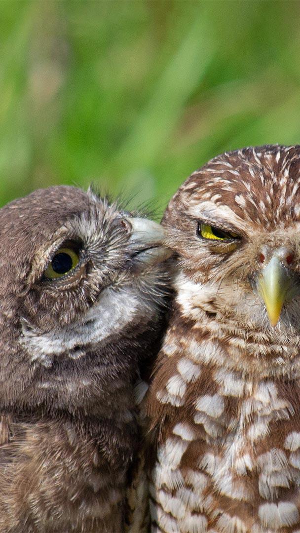 Rebels of the owl world A burrowing owl chick and adult in South Florida (© Carlos Carreno/Getty Images)