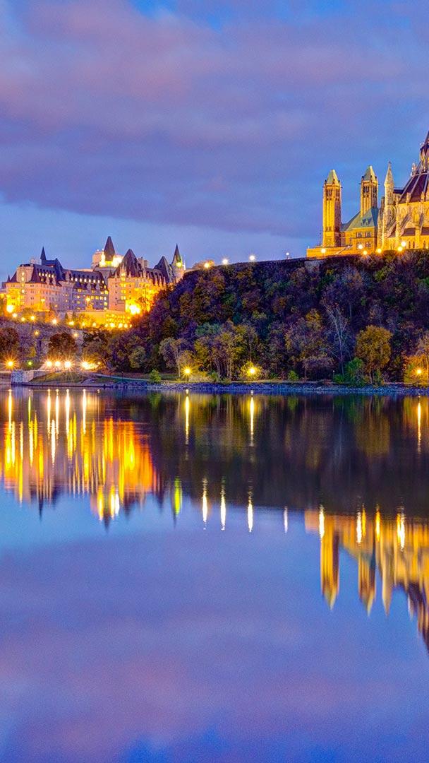 Happy Canada Day! The Parliament buildings across the Ottawa River in Ottawa (© AWL Images/Danita Delimont)