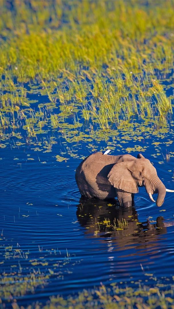 The world’s greatest oasis? Elephant walking in the Okavango River, Botswana (© Markus Pavlowsky/Getty Images)