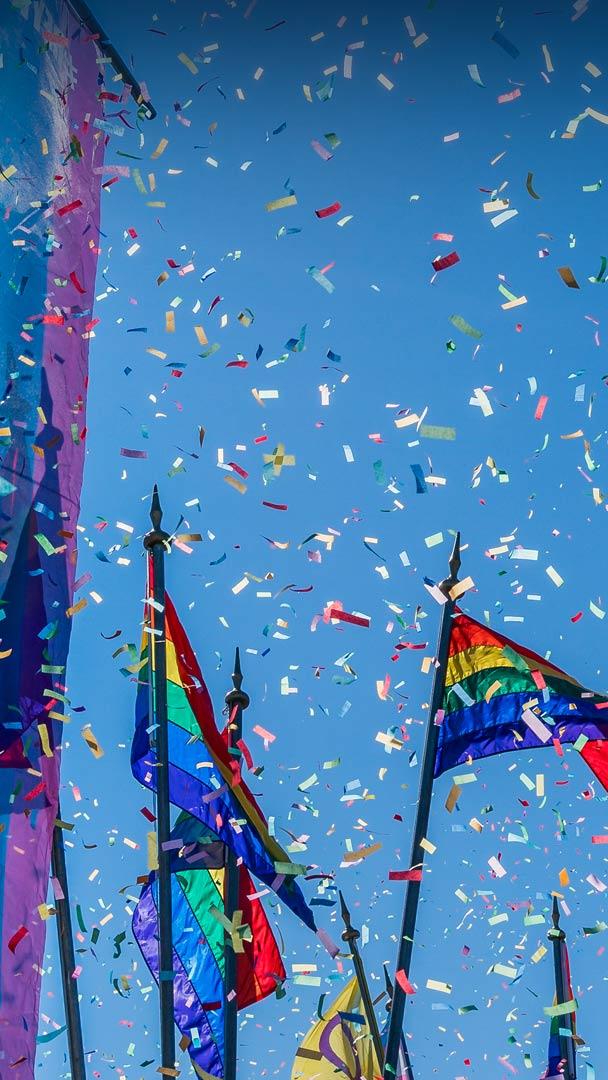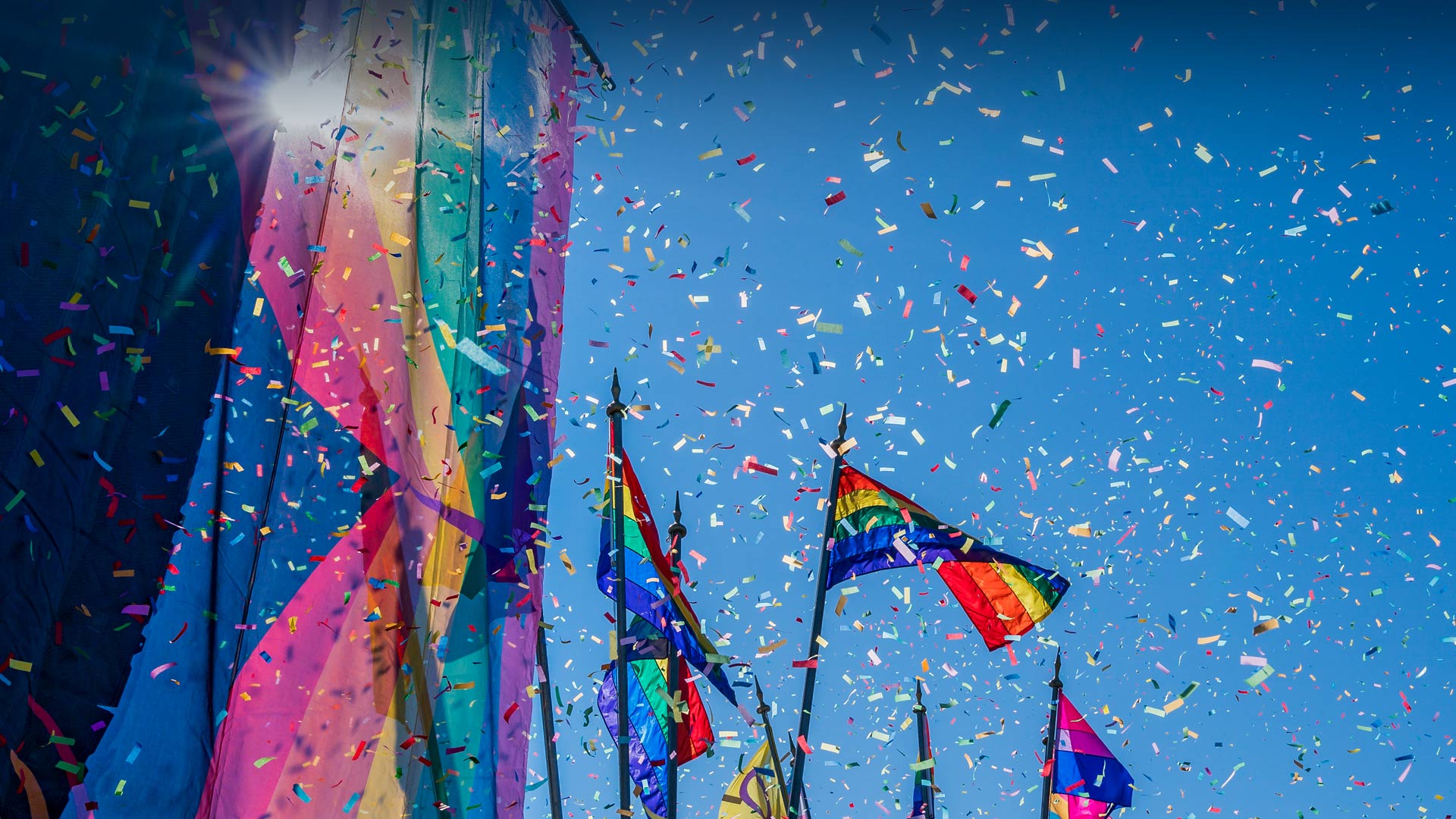 Pride and Joy Rainbow flags and confetti (© Arctic-Images/Getty Images)
