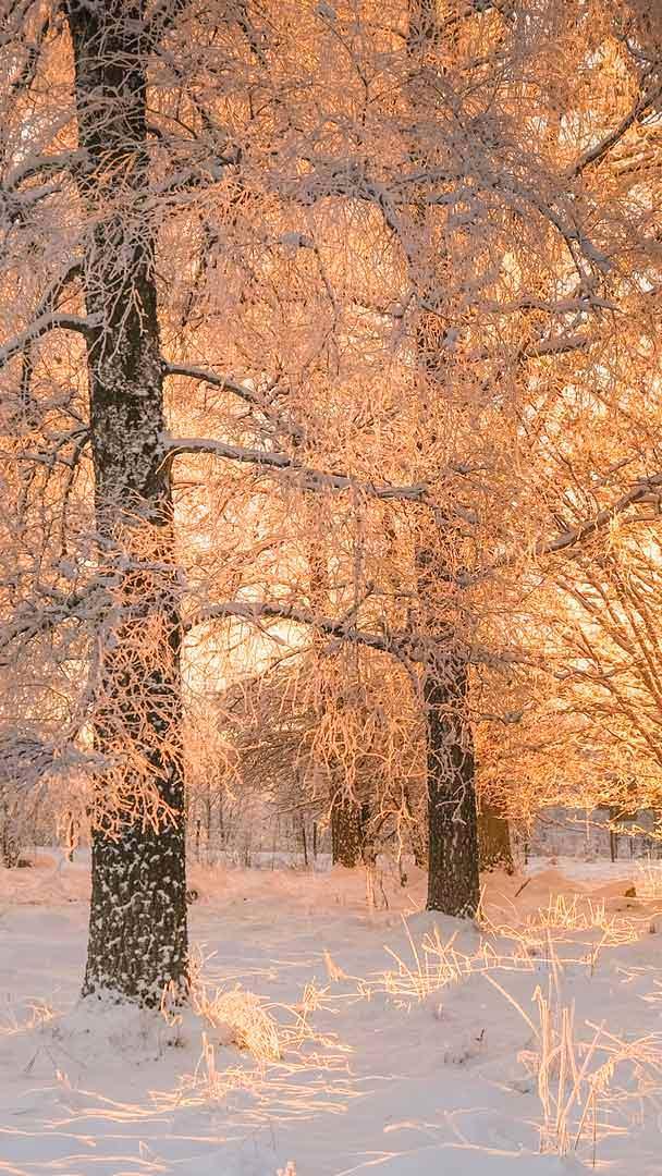 新太阳的诞生 晨光透过结霜的树木洒下,瑞典 (© Schon/Getty Images)