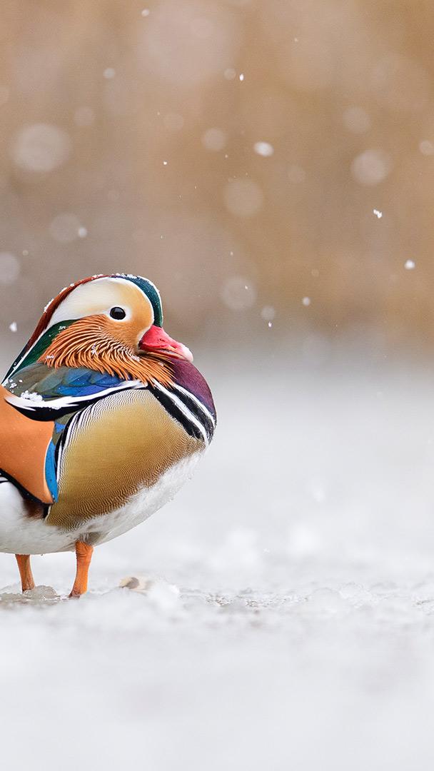 一只华丽招摇的鸳鸯 里士满公园的鸳鸯,伦敦,英国 (© Oscar Dewhurst/Minden Pictures)