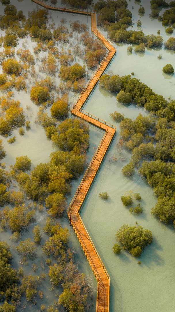 和这些耐盐植物问好! 朱拜勒红树林公园,阿布扎比,阿拉伯联合酋长国 (© Amazing Aerial Premium/Shutterstock)