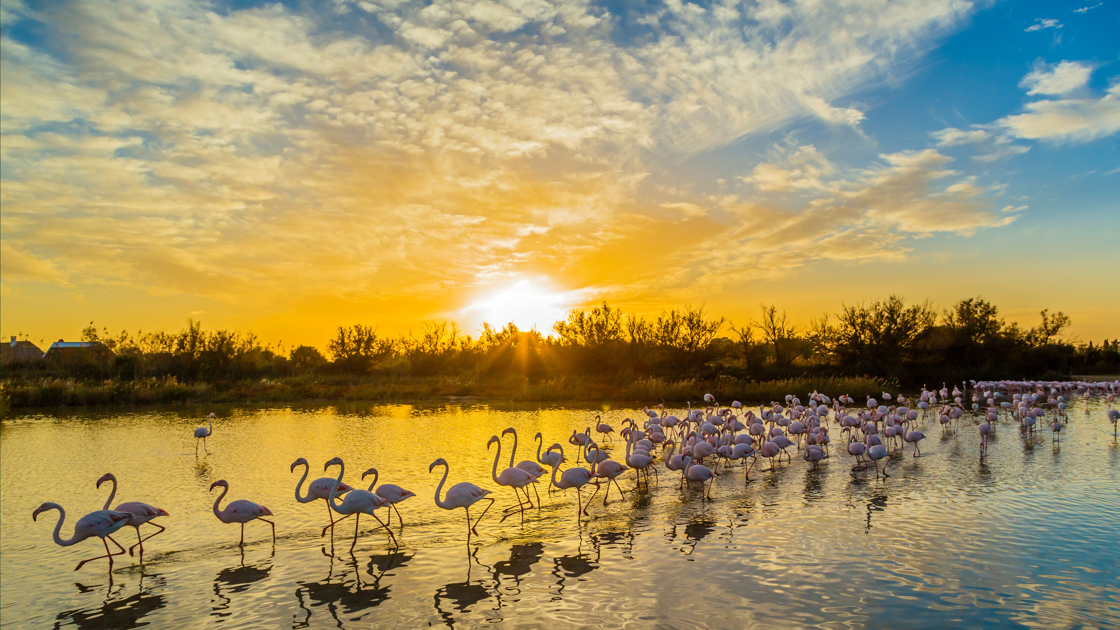 有趣的野生动物! 蓬德高鸟类公园的大红鹳,卡玛格,法国 (© Yann Guichaoua-Photos/Getty Images)