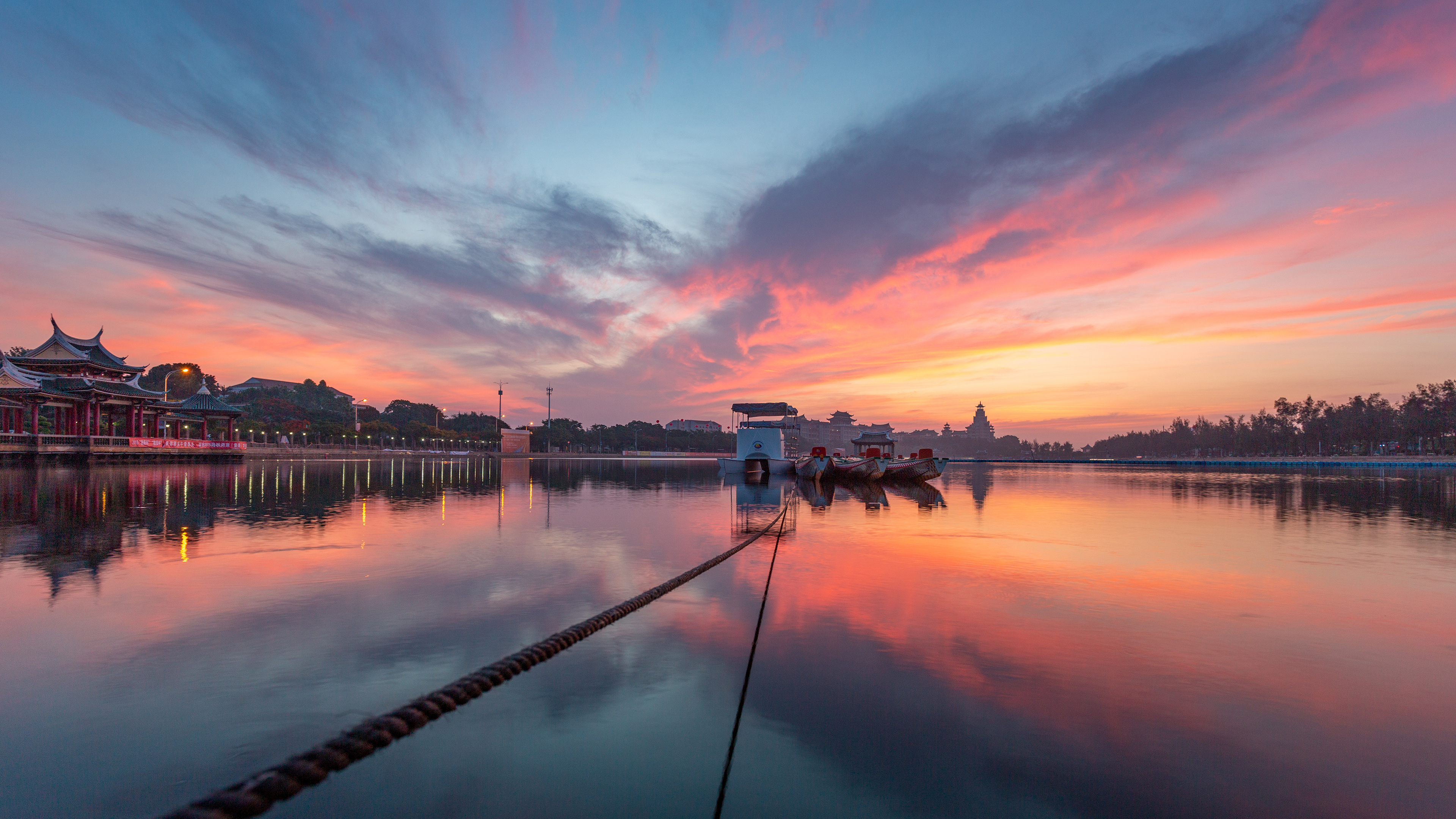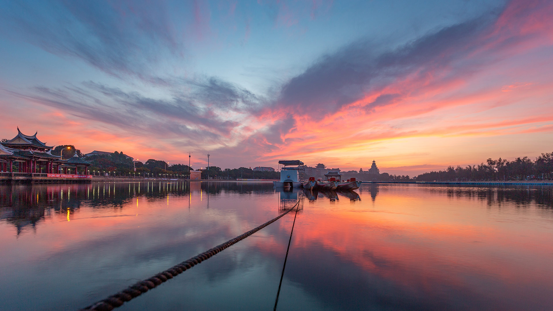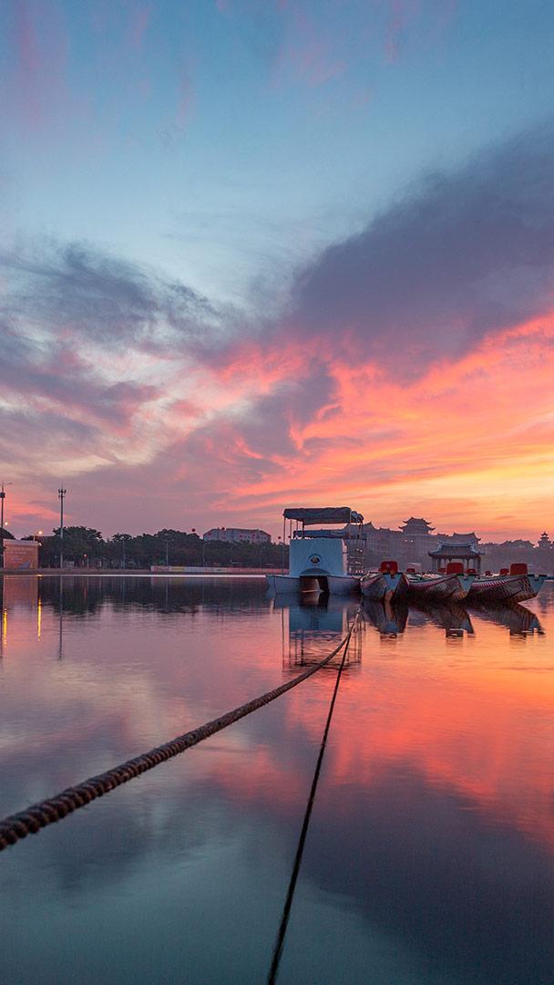 比赛将在这里开始! 龙舟池日出,集美区,厦门,中国 (© outcast85/Getty images)