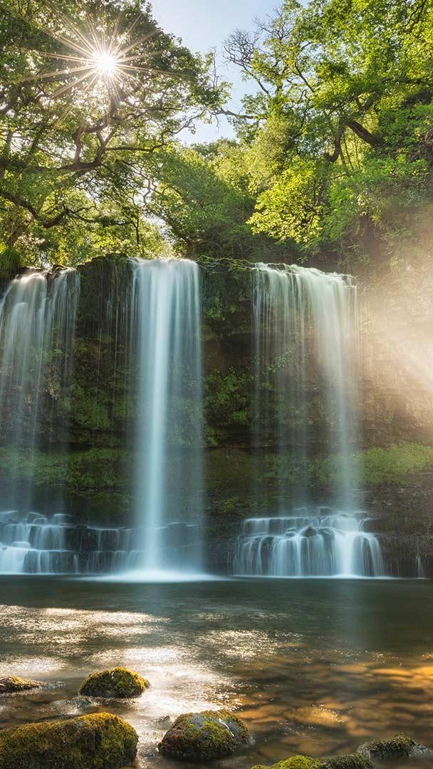 Der Wasserfall Sgwd yr Eira stürzt in klaren Linien über eine Felswand im Süden von Wales. Sein walisischer Name bedeutet „Wasserfall des Schnees“ und verweist auf den hellen Schleier, der über den dunklen Stein gleitet. Besonders an diesem Ort ist die unmittelbare Nähe: Ein schmaler Pfad führt direkt hinter den Wasserfall, sodass man ihn aus einer seltenen Perspektive erleben kann – mit dem Klang, dem Licht und der kühlen Gischt ganz nah.