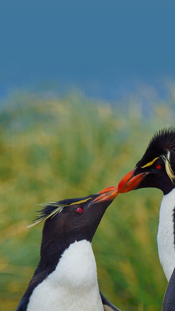 Küssende Pinguine Südliche Felsenpinguine, Falklandinseln (© Tony Beck/Getty Images)
