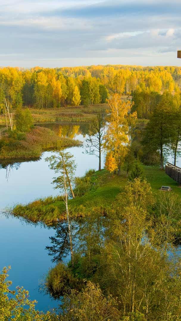 Eingebettet in die unberührte Weite des Regionalparks Biržai in Litauen ist der Aussichtsturm Kirkilai ein Beispiel für die Faszination und Kreativität moderner Architektur. Er erhebt sich fast 36 Meter über die üppige Landschaft und bietet eine unvergleichliche Aussicht auf die Schönheit der Kirkilai Karstseen. Dieses Naturwunder, entstand durch die Auflösung wasserlöslicher Gesteine wie Gips und Kalk. Im Laufe der Zeit entstanden durch Erosion und Einsturz von Höhlen in diesen Gesteinen Vertiefungen, die sich mit kristallklarem Wasser füllten und so zu diesen faszinierenden und einzigartigen Gewässern führten. Die miteinander verbundenen Seen spiegeln das umgebende Grün wider und bilden eine malerische Oase für Naturliebhaber.