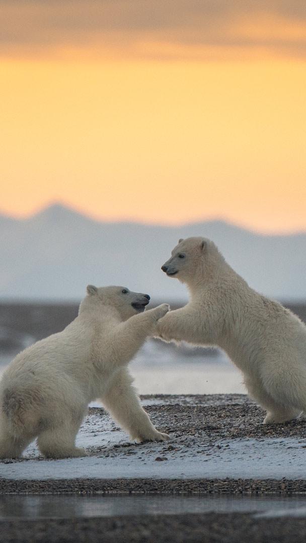 Wussten Sie, dass die NGO Polar Bears International im Jahr 2004 den „Tag des Eisbären“ ins Leben gerufen hat, um für den Schutz dieser Säugetiere und ihres Lebensraums zu werben? Der Tag wurde so gewählt, dass er mit der Zeit zusammenfällt, in der die Jungen von ihren Müttern in der Höhle beschützt werden, da dies die verletzlichste Zeit im Leben eines Eisbären ist. Diese Spitzenraubtiere leben und jagen auf dem arktischen Meereis. Zu ihrer Beute zählen vor allem Robben, aber auch Belugawale, Rentiere und andere arktische Tiere. Die Eisbären auf dem heutigen Foto befinden sich in Kaktovik, einer kleinen Walfanggemeinde der Iñupiat im US-Bundesstaat Alaska. Die Bären besuchen das Dorf im Herbst, angelockt von den Hinterlassenschaften der Walfänger.