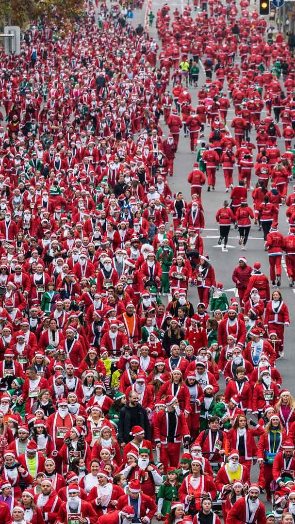 ¿Escuchas el “¡Ho, ho, ho!”? Puede que sea por una combinación de cansancio y de miles de Santa Claus corriendo por una especial razón. ¡Hoy celebramos la Navidad al ritmo de solidaridad! la ciudad de Madrid se viste de rojo con la emotiva Carrera Solidaria de Papá Noel, una iniciativa que lleva más de tres décadas transformando vidas y que une deporte, fiesta y corazón. Miles de "Papás Noeles" recorren las calles madrileñas, ejemplificando el espíritu navideño y la ayuda al prójimo, todo en apoyo al notable proyecto de Formación Laboral para Jóvenes de la Cruz Roja.