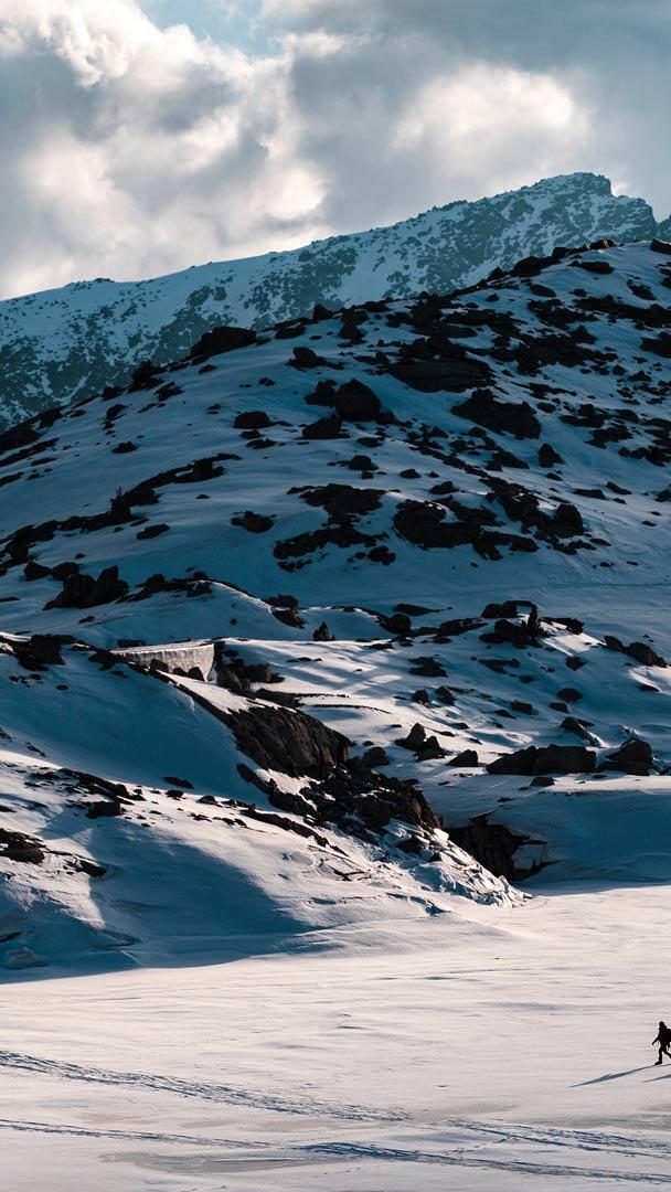 Exploradores en un lago helado, Estany de Colomina, Lérida, Cataluña, España © Manu Prats/Stocksy