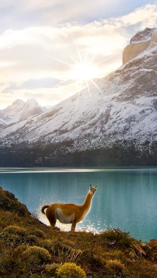 El guanaco, un camélido nativo de Sudamérica y protagonista de la imagen de hoy, es conocido por su resistencia y adaptación a las duras condiciones de la región andina y patagónica. Con una altura de hasta 1,2 metros y un peso de alrededor de 90 kilos, los guanacos poseen un pelaje espeso que los protege del frío extremo, y es utilizado para fabricar tejidos ligeros y cálidos. Estos animales, considerados antepasados salvajes de las llamas, forman manadas, que se desplazan por vastos paisajes en busca de vegetación escasa.