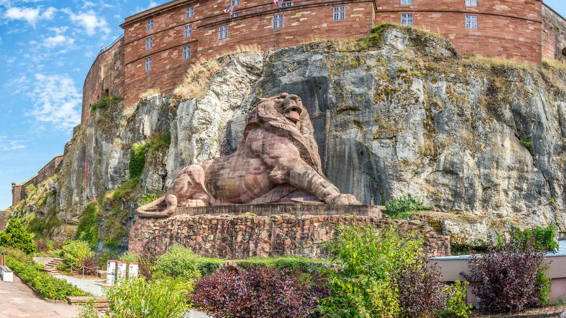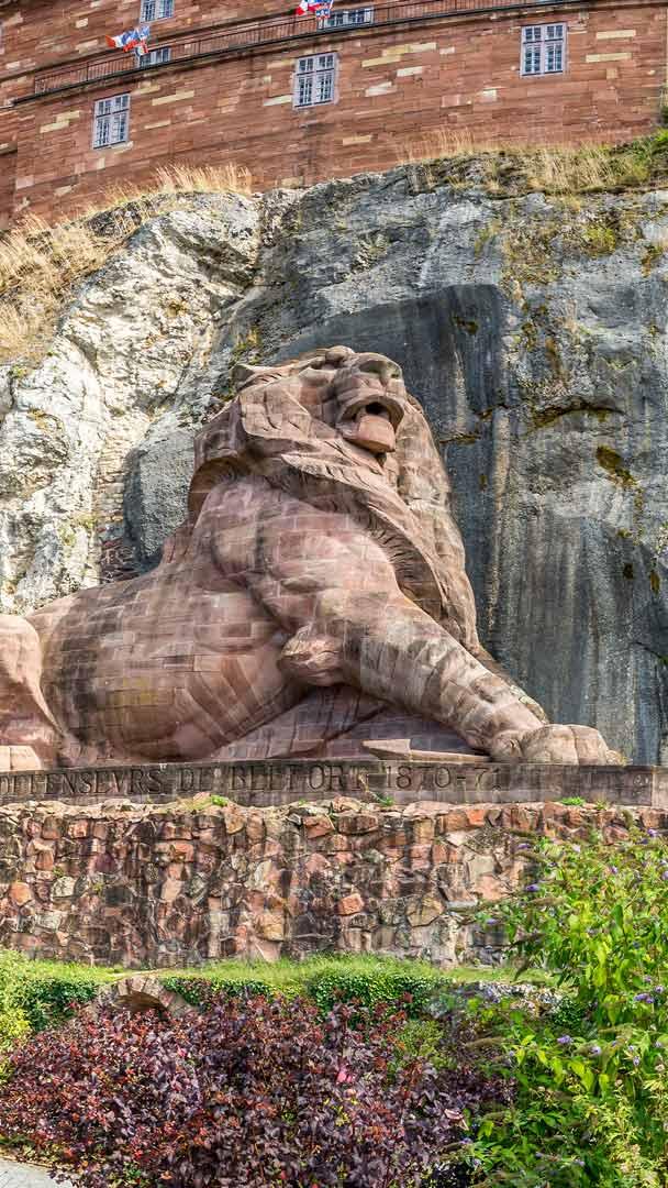 Chaque année, le 18 avril, la Journée internationale des monuments et des sites célèbre le patrimoine mondial. Sur la photo, le Lion de Belfort domine fièrement la ville éponyme, située en Bourgogne-Franche-Comté, à l"est de la France. Sculpté par Frédéric Auguste Bartholdi en 1880, également célèbre pour avoir créé la statue de la Liberté offerte par la France aux États-Unis, ce colosse de grès rose est adossé à la citadelle de Belfort. Il commémore la résistance héroïque de la ville face aux troupes prussiennes lors du siège de 1870-1871.