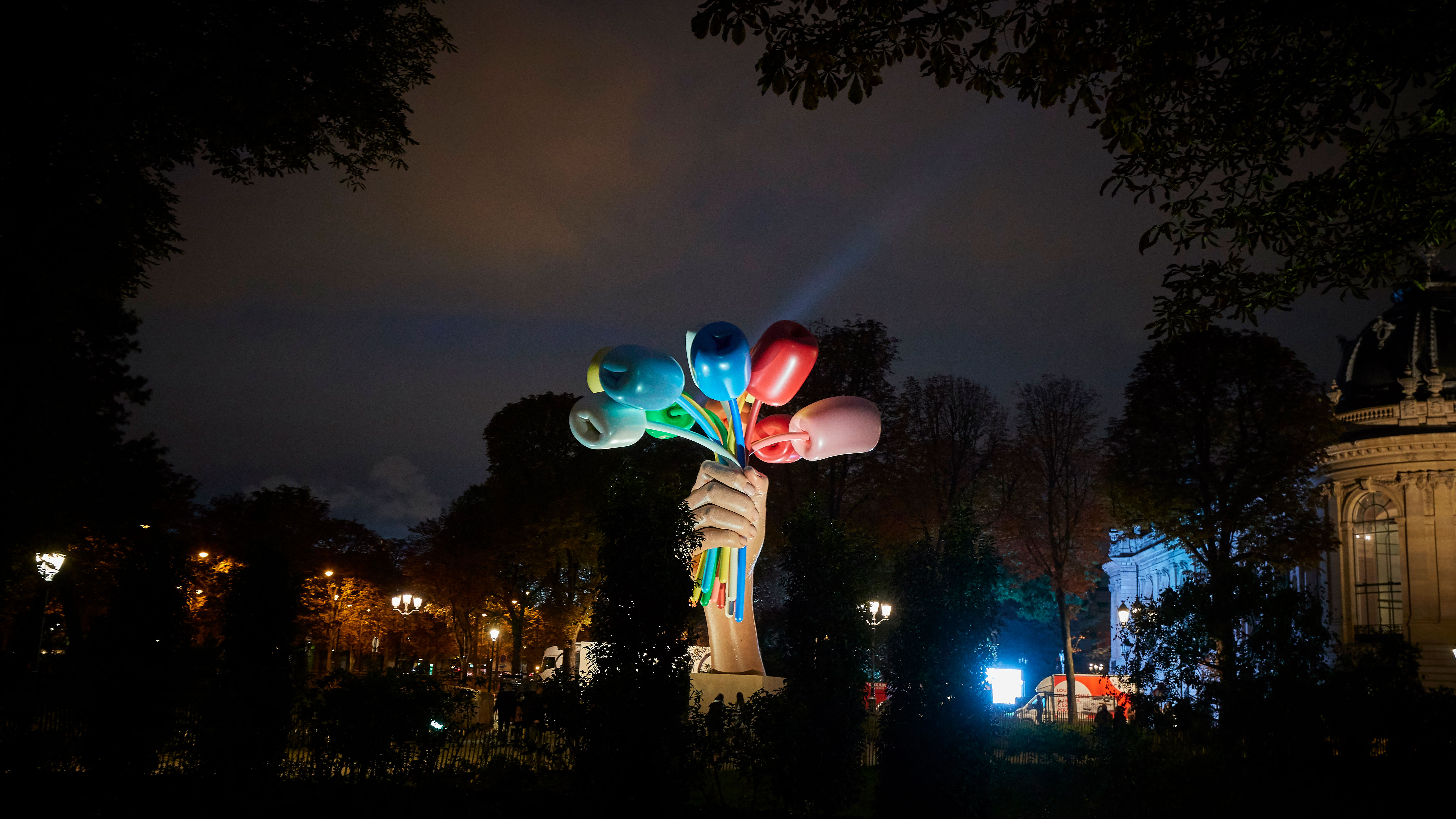 Jusqu’au bout de la nuit "Bouquet of tulips" de Jeff Koons, Paris (© Kiran Ridley/Stringer/getty images)