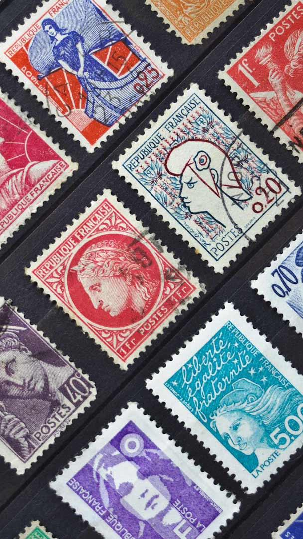 La belle Marianne Collection de timbres représentant Marianne, symbole de la République française (© Virginie Schleiermacher/Alamy Stock Photo)