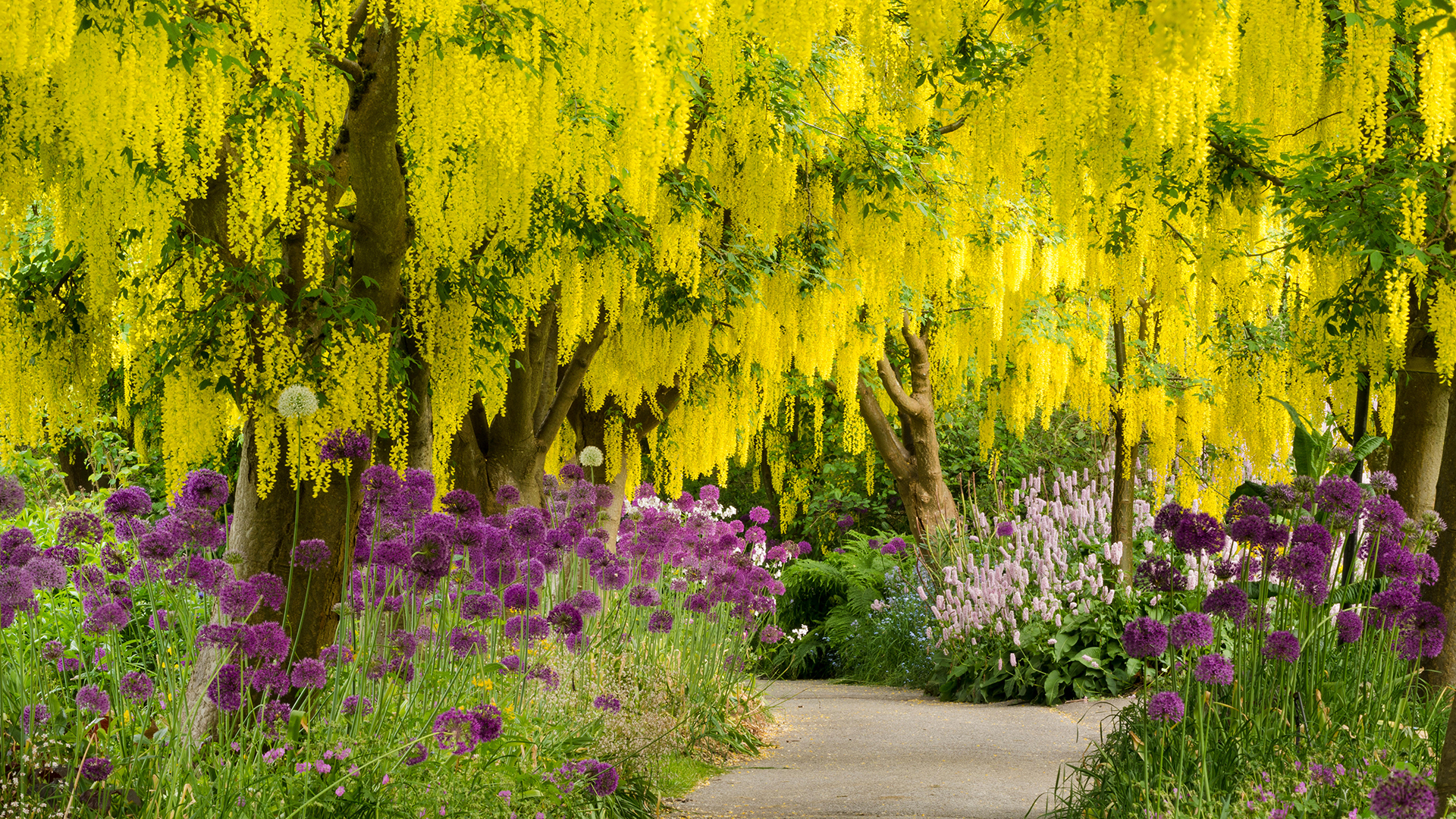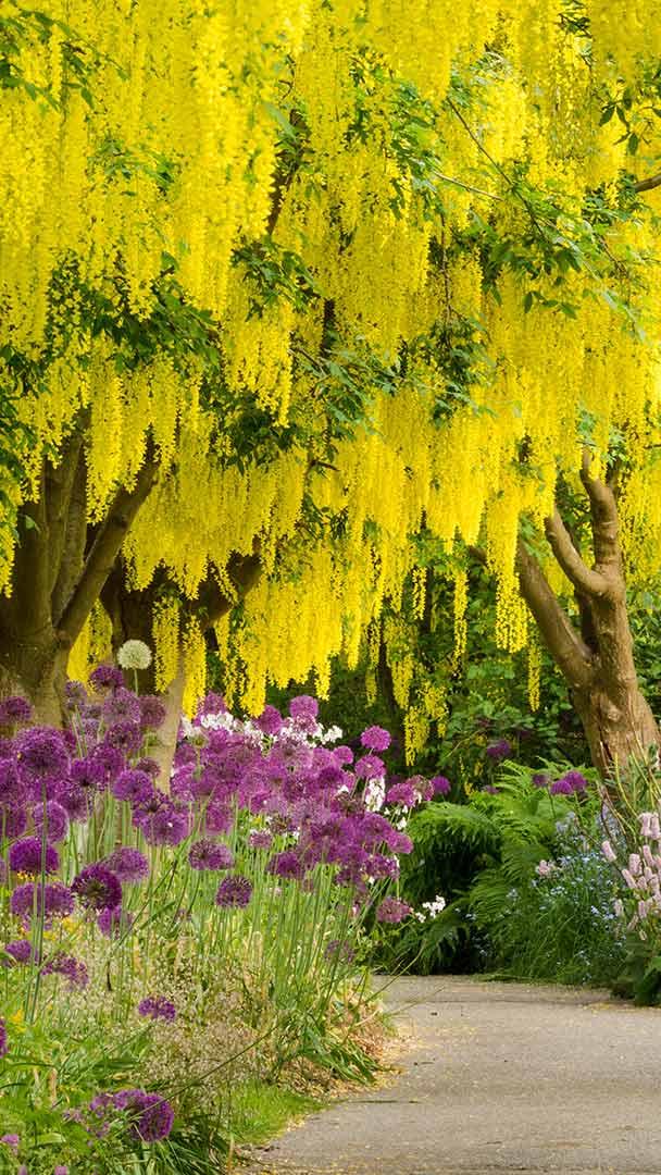 Belles plantes ! Laburnum et alliums mauves dans le jardin botanique de VanDusen, Vancouver (© Greg Vaughn/Alamy)