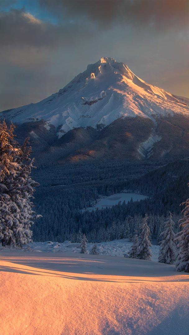 Le mont Hood se dresse avec son pic pointu et enneigé à l"horizon de l"État américain de l’Oregon. Ce stratovolcan endormi est la plus haute montagne de l"État et attire les aventuriers et les amoureux de la nature. Doté de 12 glaciers et de vastes étendues de neige, le Mont Hood offre un terrain de jeu hivernal idéal tout au long de l"année.