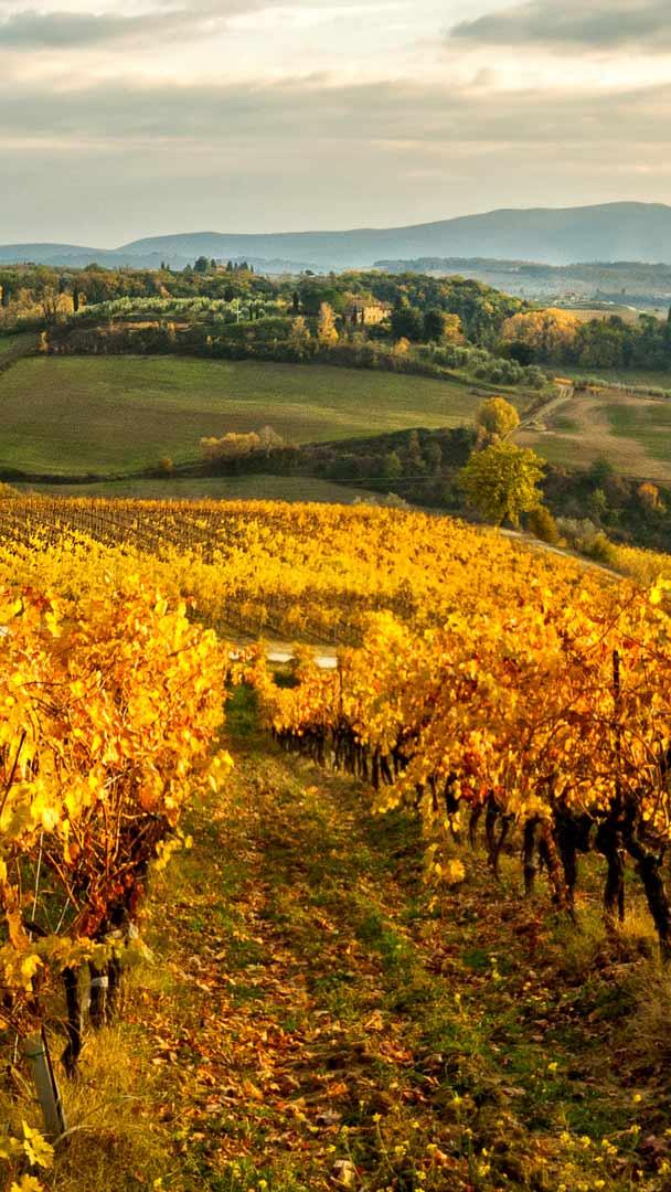 Sole e cure delluomo, rendono questi vigneti unici Foglie di vite nei vigneti del Chianti in Toscana (© Massimo Santi/Getty Images)