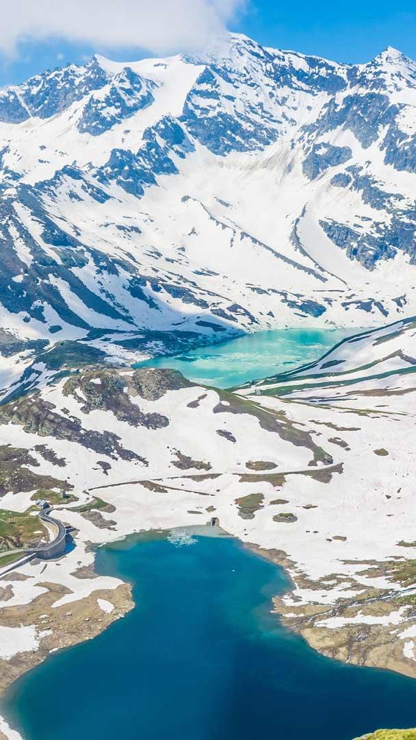 Paradiso innevato Paesaggio alpino con laghi nel Parco Nazionale del Gran Paradiso, Piemonte – Valle d’Aosta, Italia (© Stefano Zaccaria/Alamy Stock Photo)