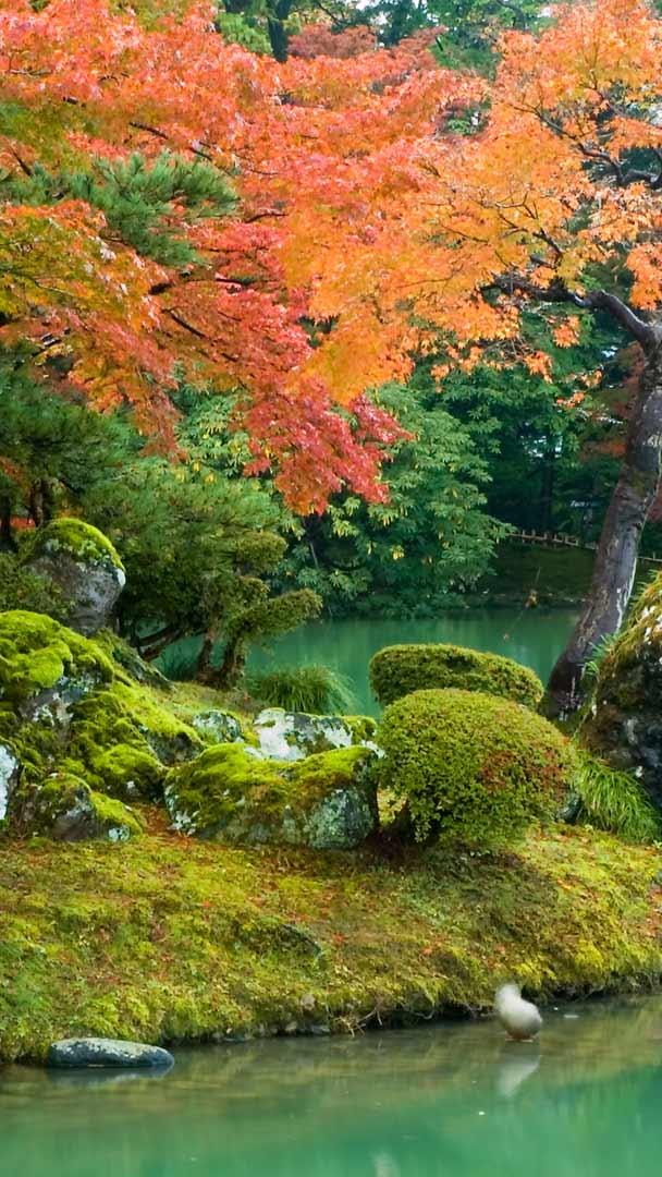 紅葉に彩られた日本庭園 © Darby Sawchuk/Alamy