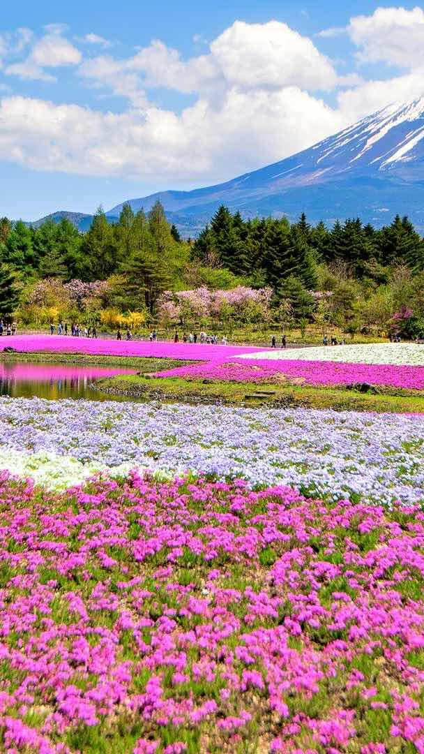 4 月 11 日から 5 月 24 日まで、山梨県の富士本栖湖リゾートで「富士芝桜まつり」が開催されます。富士山の麓に広がる広大な敷地には、ピンクや白など色とりどりの芝桜が約 50 万株も咲き誇り、春の富士山との美しいコラボレーションを披露してくれます。毎年全国から多くの観光客が訪れており、今年のテーマは「春の特等席。」です。