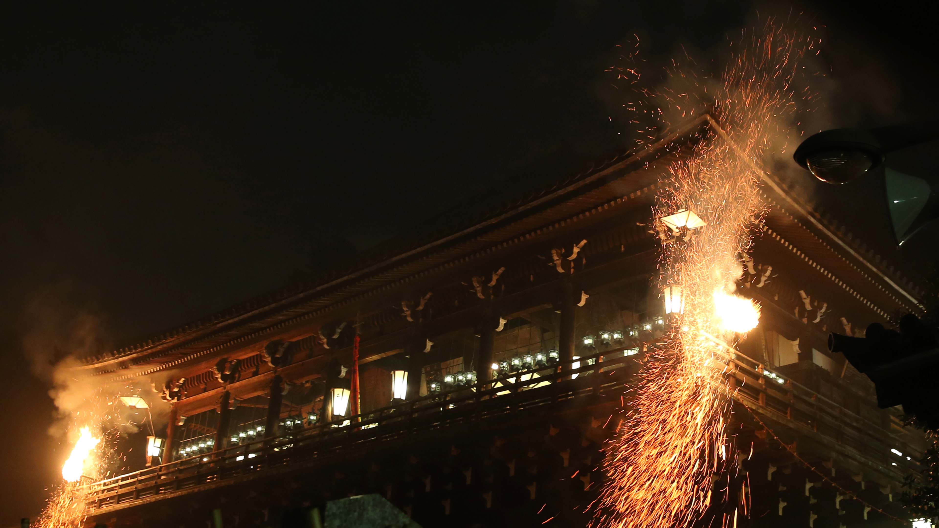 3 月 1 日から 14 日まで、東大寺二月堂では、修二会という伝統的な法会が行われています。行中の 3 月 12 日の深夜には、僧侶たちが二月堂前の若狭井という井戸から「お香水」を汲み上る「お水取り」の儀式が行われます。十一面観音にその水をお供えして天下安穏などを祈願します…