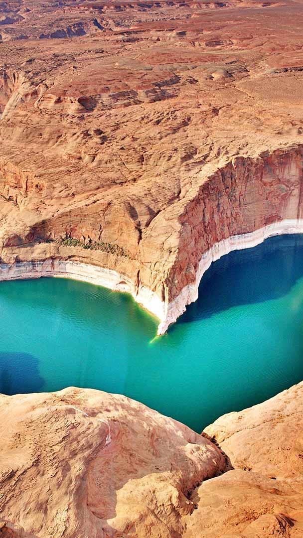 Man-made, meandering Lake Powell Lake Powell on the Colorado River, USA (© Peter Schaefer/Alamy)