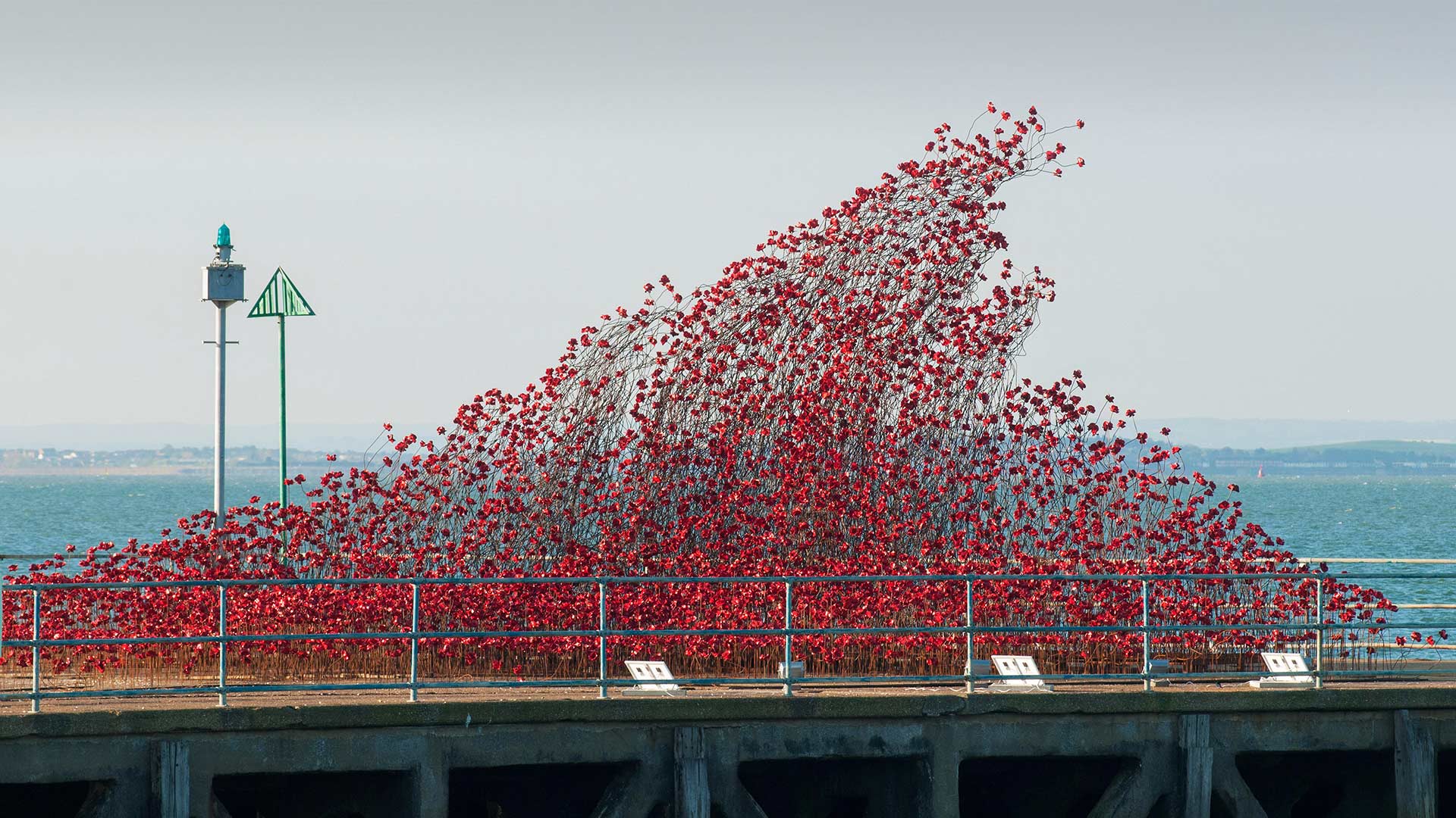 A wave of remembrance Poppies:Wave on Barge Pier, Shoeburyness, Southend-on-Sea, Essex (© Ben Rector/Alamy)
