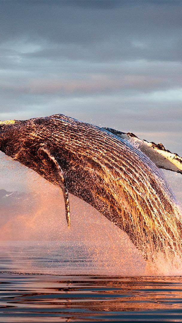 Humpback whales are famous for breaching—leaping out of the water in a spectacular display of size and power. Even though they can weigh more than a house and stretch to 50 feet in length, they still manage aquatic acrobatics that are amazing to behold, as the picture on our homepage captures so beautifully. Scientists don"t know why some whales breach but speculate it"s a form of communication or a mating display. Or maybe they"re just having fun.