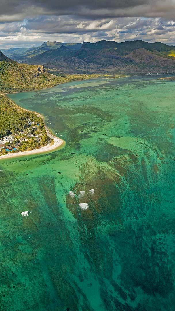 From this vantage point high over the Indian Ocean, we have a spectacular view of the "underwater waterfall" formed off the coast of Mauritius. Not a true waterfall, this is an optical illusion—it"s really the trails of sand and silt deposits on the seafloor being washed by currents over the edge of an ocean shelf. But we"re probably not alone in thinking at first glance that the ocean is pouring into some massive unseen drainpipe.
