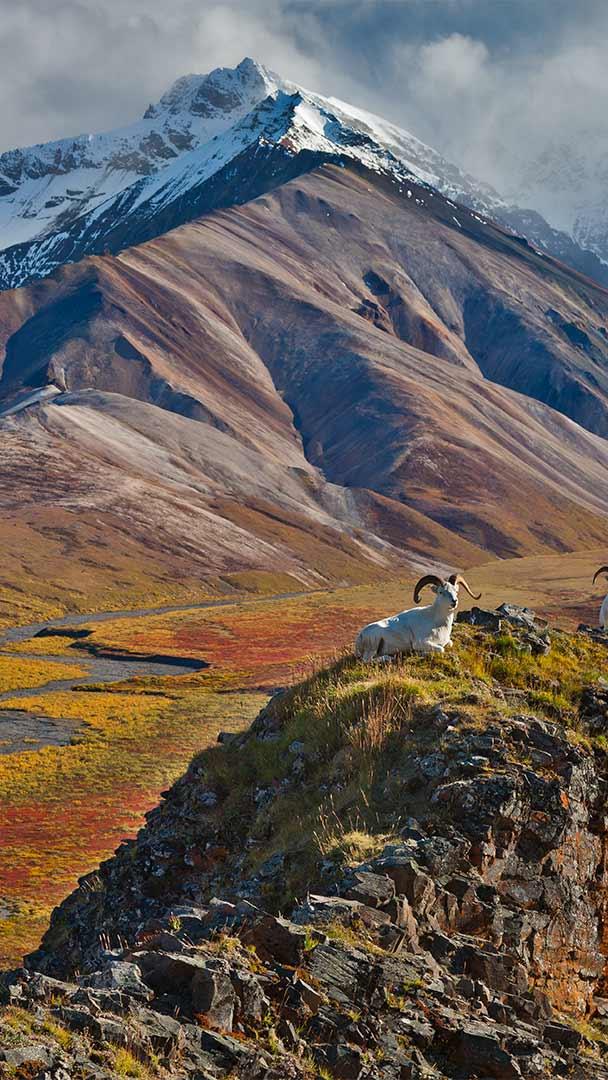Someone ought to tell these Dall sheep they don"t blend in here at Polychrome Pass. Their white coats may be great camouflage against the Alaskan snows, but the warm tones of this tundra make them stick out a bit. And they aren"t the only thing sticking out in this national park: It"s home to the tallest mountain in North America.