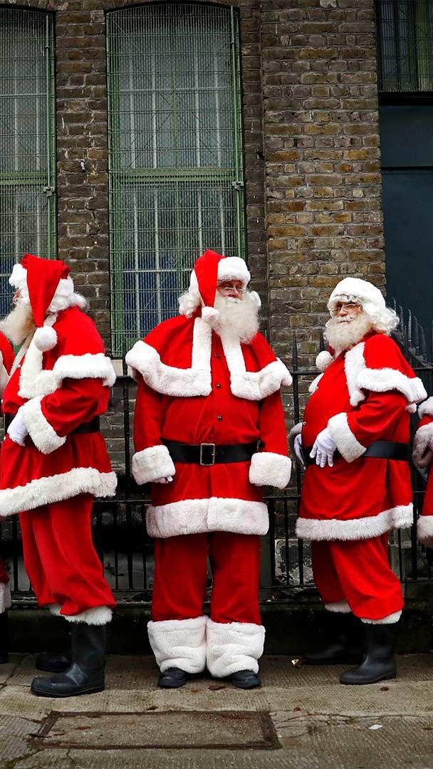 If Kriss Kringle himself stood among this lineup of rigorously trained substitute Santas, you"d never know it: These certified Saint Nicks have done their ho-ho-homework. They"re students of the Ministry of Fun Santa School—each year the Ministry of Fun trains dozens of "Father Christmases" (as Santa Claus is known here in London). Skilled in the art of helping Santa to be in many places at once, Santa School graduates will soon be in demand at department stores across jolly England.