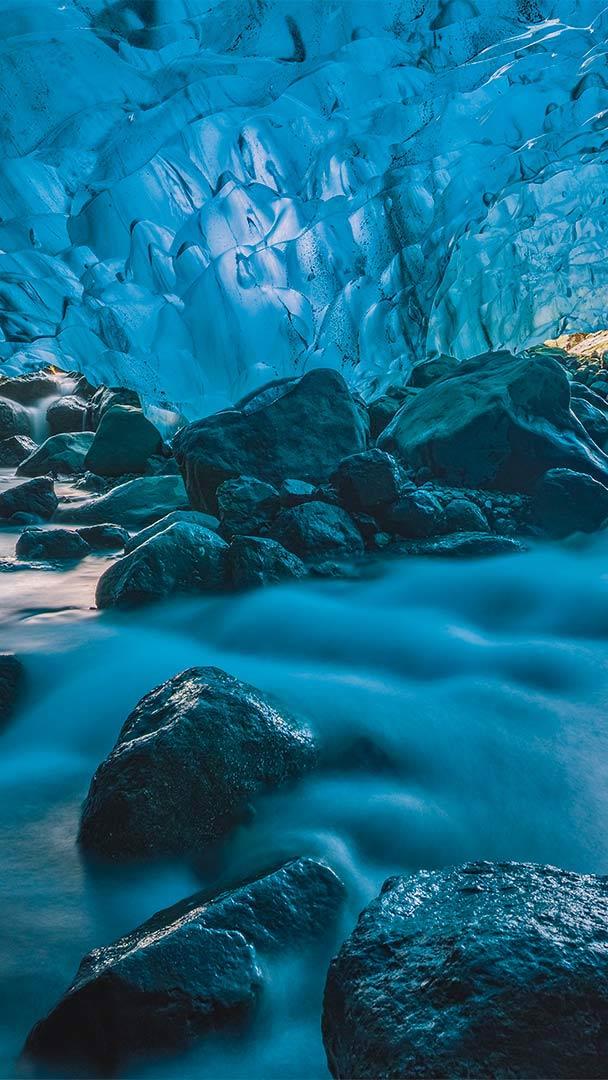 The Land of Fire and Ice is home to countless natural wonders, like this brilliant blue cave formed within the ice of a glacier. (Glacier caves are often called ice caves, but the term "ice cave" is properly used to describe a bedrock cave that contains year-round ice; a glacier cave is formed entirely within the ice of a glacier.) The majority of Iceland"s glacier caves are in Vatnajökull glacier, which covers about 8% of the island nation and is one of the largest glaciers in Europe.