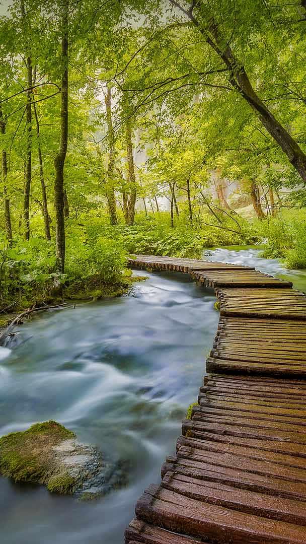 In a country more famous for its coastline, about a million visitors each year venture inland to amble along these boardwalks and marvel at spectacular lakes and mountains. Plitvice Lakes National Park is the oldest and largest of Croatia"s national parks. The big attraction is the series of 16 descending, turquoise-colored lakes, connected by subterranean karst rivers, and above ground by streams and waterfalls. The lakes are separated by natural dams of travertine, which is created by the interplay of water, plant material, and bacteria. The water changes color from green to azure to gray depending on the angle of the light and the density of minerals and organisms in the water. About 11 miles of wooden boardwalk make it easy for people to wander among the lakes, falls, and caves that are open to visitors year-round.