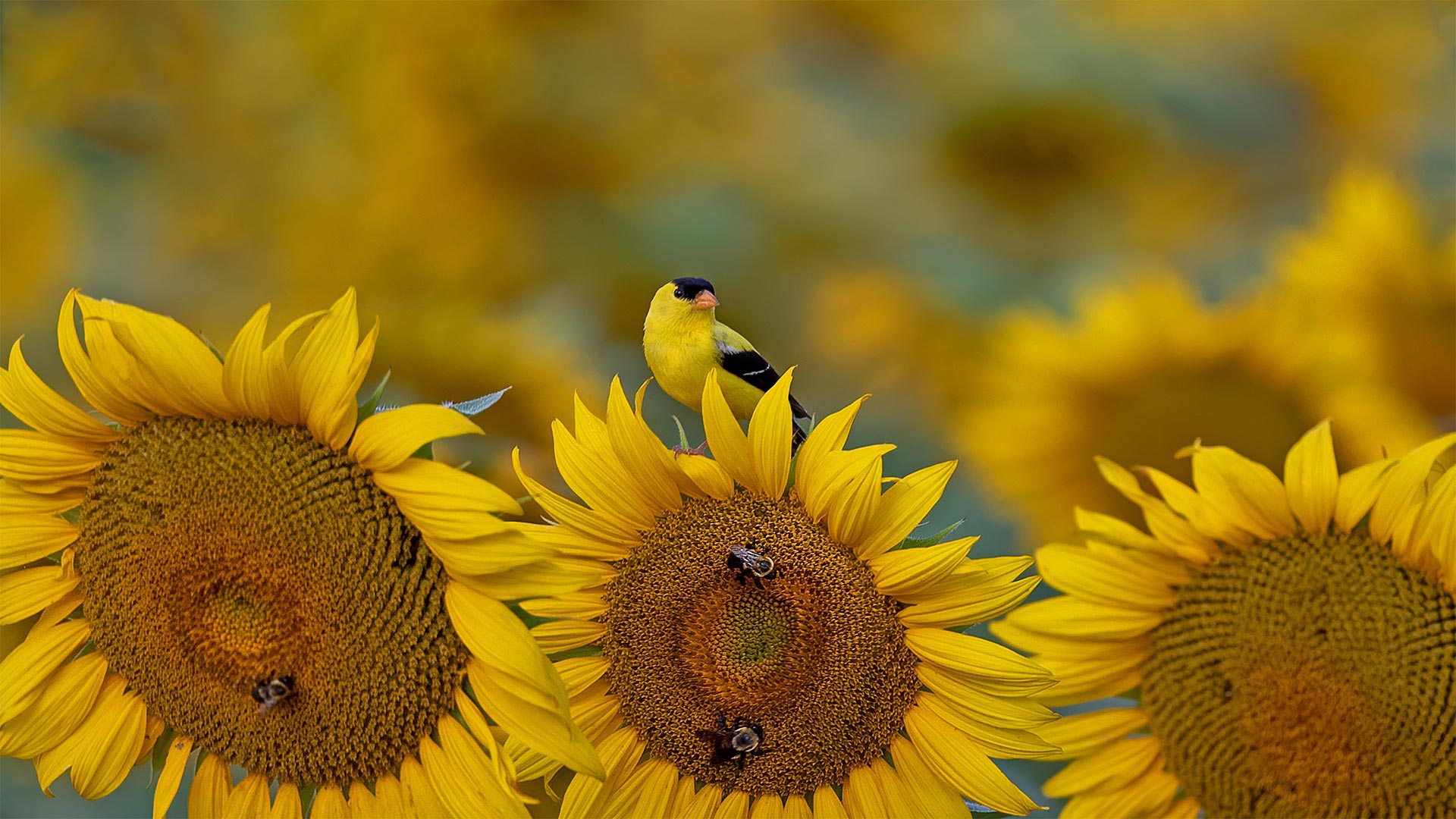Birds, bees, and flowers grace today"s photo, but we"re going to bet that potato chips will be what you remember tomorrow. First the basics: We"re in South Carolina looking at a beautiful American goldfinch perched atop a sunflower. While the matching color scheme makes for a great photo, it"s likely this little bird has stopped for a meal. American goldfinches are among the strictest vegetarians in the bird world, preferring grains and seeds, especially sunflower seeds. That"s why it"s not uncommon to see them in neighborhoods with well-stocked bird feeders. In fact, human activity has generally benefited American goldfinches overall. The birds thrive in areas where forests have been removed—they prefer open meadows or fields covered in weeds.