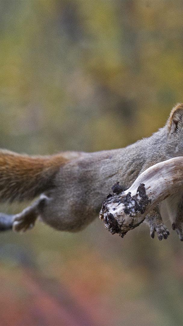 Oh, to be a squirrel with a feast such as this! It"s National Mushroom Month, and it seems our red squirrel friend here in Alaska got a literal jump on celebrating. It might surprise you, but squirrels don"t only eat nuts. They"ll eat just about whatever"s around and that includes big mushrooms. Though a small percentage of wild mushrooms can be poisonous to humans, squirrels can eat many of these frightening fungi without worry, thanks to special proteins in their guts. Nice to know someone"s enjoying them.