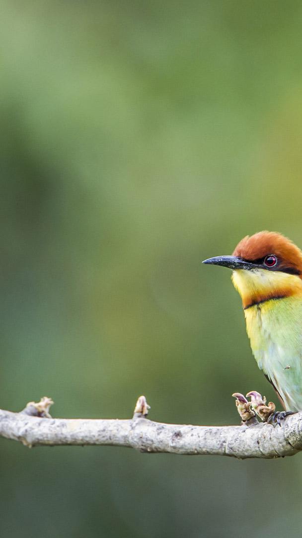 It"s not just a name. Chestnut-headed bee-eaters spend their days swooping after stinging insects. As well as bees, they also feast on wasps, hornets, and other bugs. The birds in today"s image are in Bardia National Park in Nepal, but they"re found across many other South Asian countries, from India and Bangladesh to Sri Lanka and Thailand. They catch their prey in mid-flight, returning to a perch where they beat insects to stun them and remove the stinger, which makes them safe to eat. These birds are designed to hunt: Their dazzling green plumage helps camouflage them in dappled jungle light, their curved beak is perfect for picking off insects with precision, and their eyes can move individually, which makes them all the better for spotting bees.