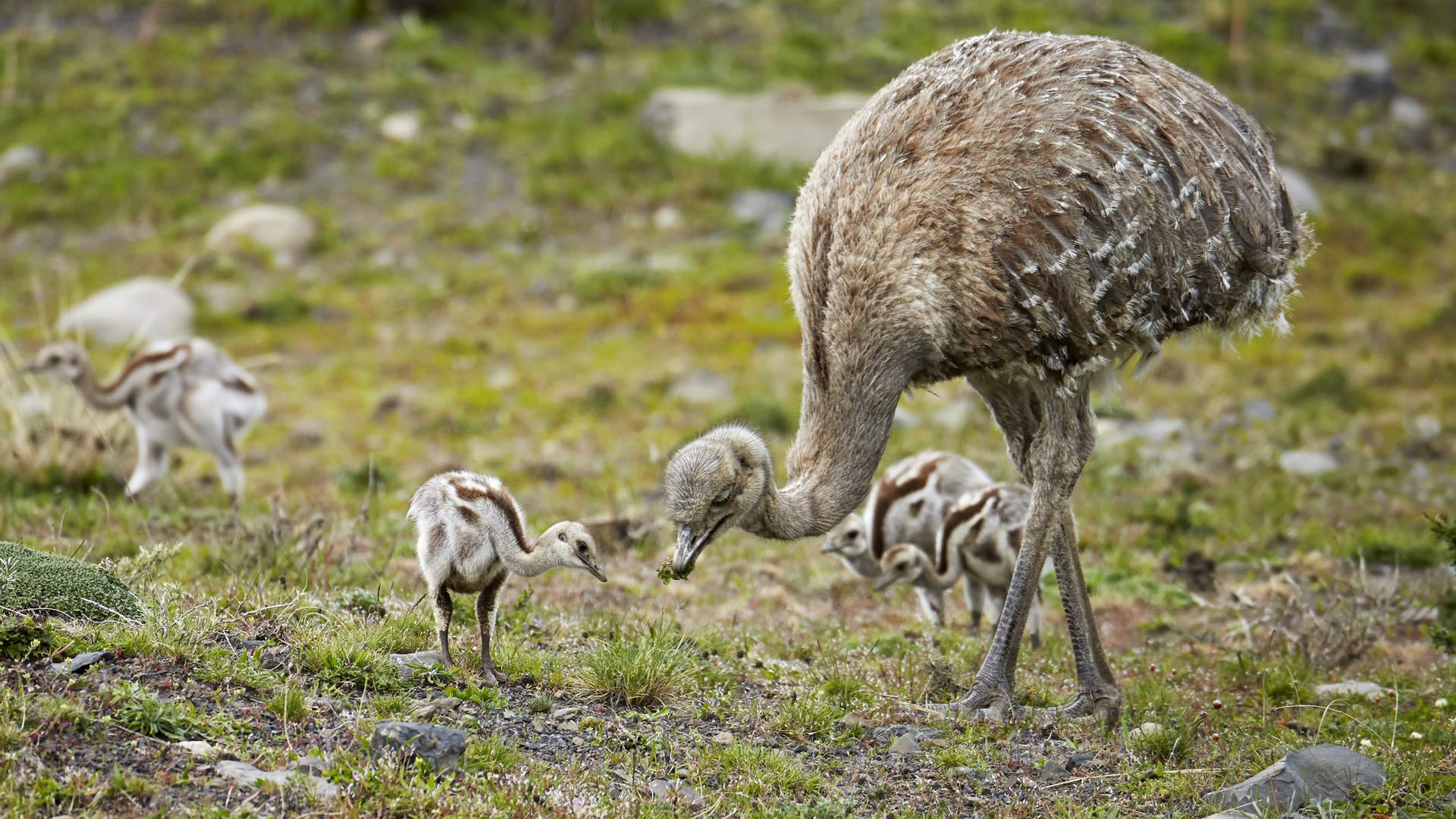 For Father"s Day, we"re featuring a male lesser rhea (aka Darwin"s rhea) with his chicks in Torres del Paine National Park, Patagonia, Chile. From the moment the chicks hatch, the male lesser rhea takes full charge—guiding them through the brush, communicating with gentle whistles, and sheltering them under his wings in times of danger or cold. Remarkably, he often adopts lost chicks, raising a mixed-age brood. For nearly 6 months, this bird father teaches and protects the chicks, with many staying close until maturity. Talk about going above and beyond for your kids!